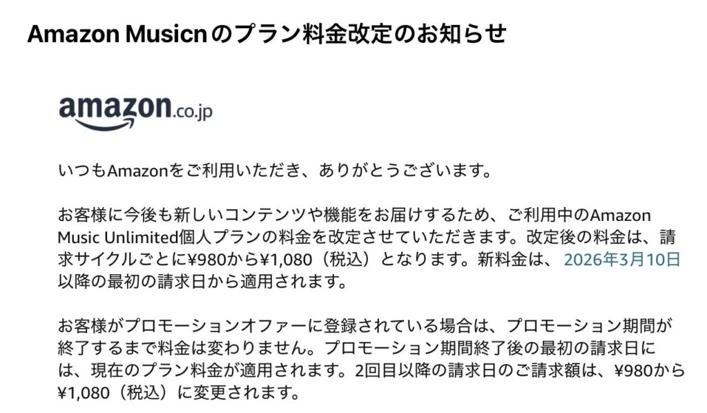 Amazon Music Unlimitedの値上げ