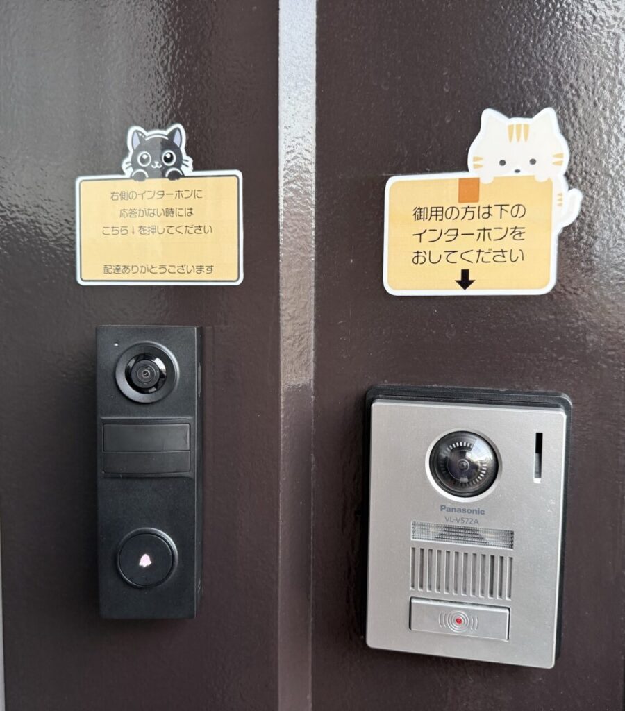 ドアホンが二つ並んでいるのは異様かもしれないと思ったので、2台の使い分け説明をつけてみました。