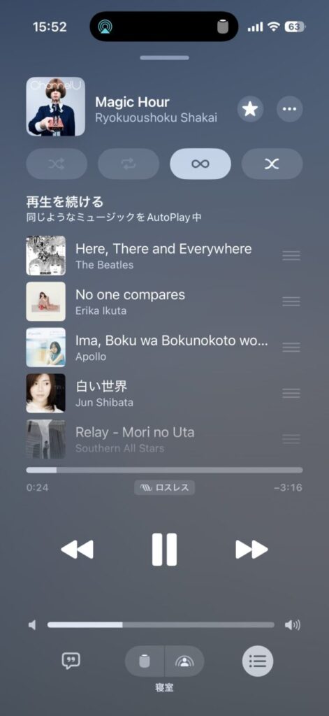 無限マークを押してあるので、最後尾で演奏が止まる事なく、似たような選曲基準で継続されます。