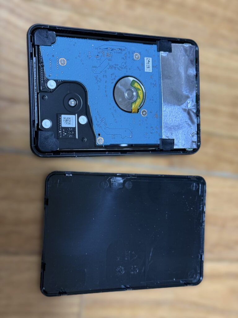 これは黒いプラスチックケースに入っていたUSB-CタイプのUSB外付けHDDドライブ(1TB)でした。