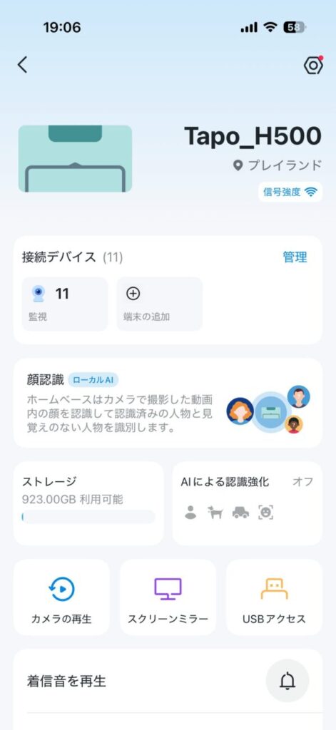 このAIによる強化された項目は、スマートホームベースTapo H500の恩恵です。