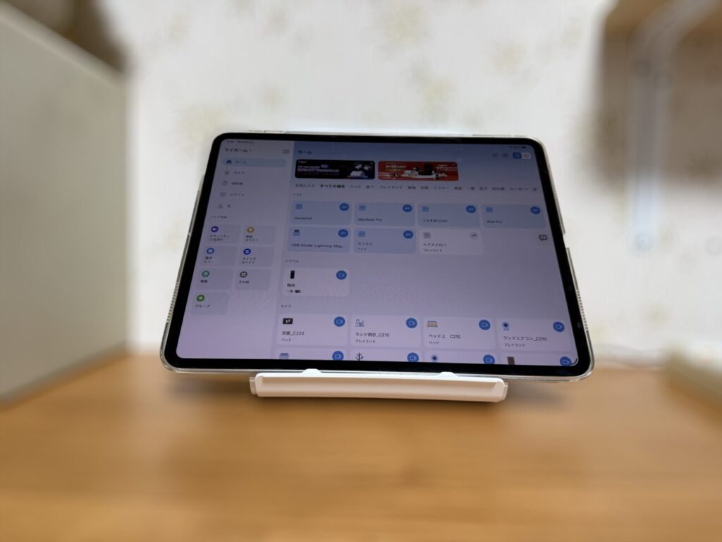 さて、設定まで完了したので、早速、iPadを本体に乗せて利用スタートしてみました。