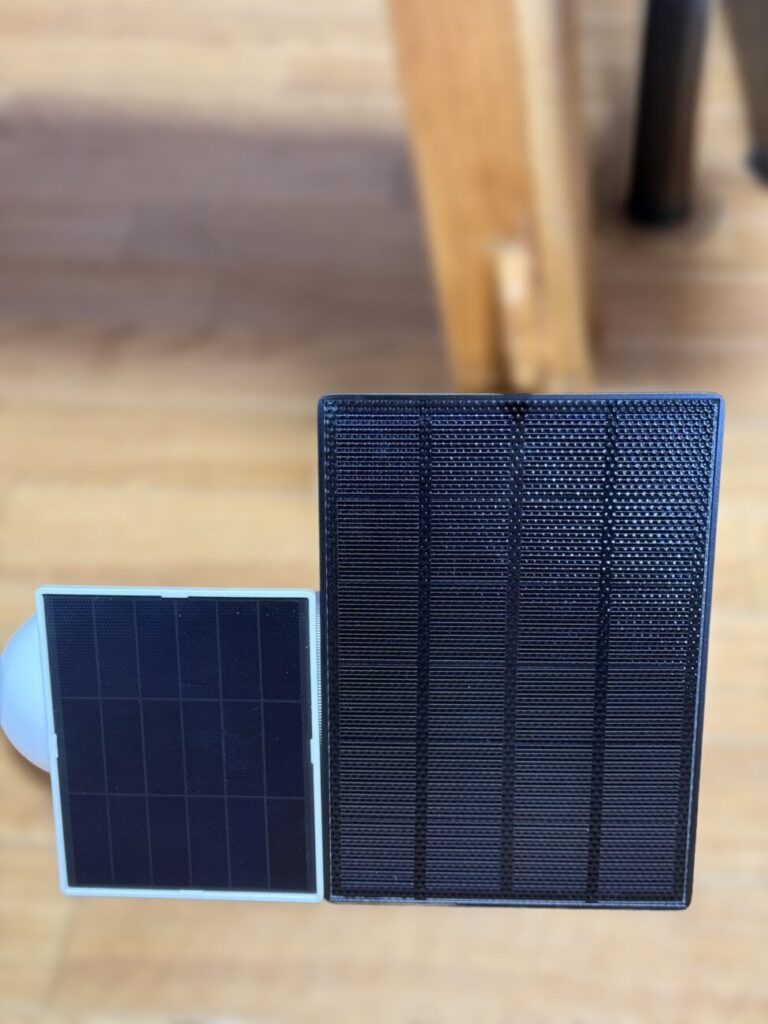 TP-Link社の通常のソーラーパネルの大きさと比較した写真です。正直これだけ面積の差があると、電力供給がギリギリになるのか?と懸念しましたが取越し苦労でした。