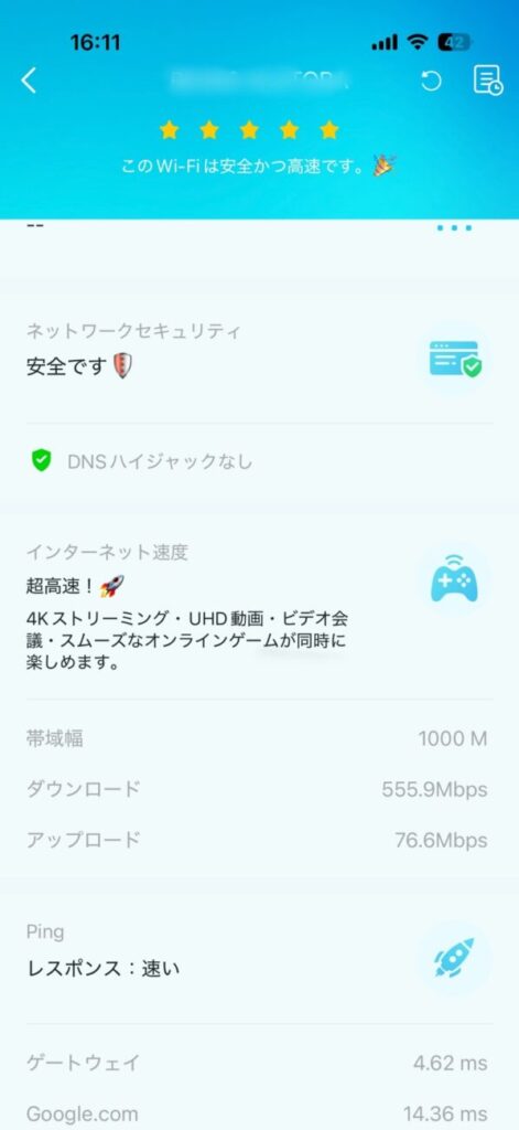 私少ない端末接続数なら550Mbpsと快適でした