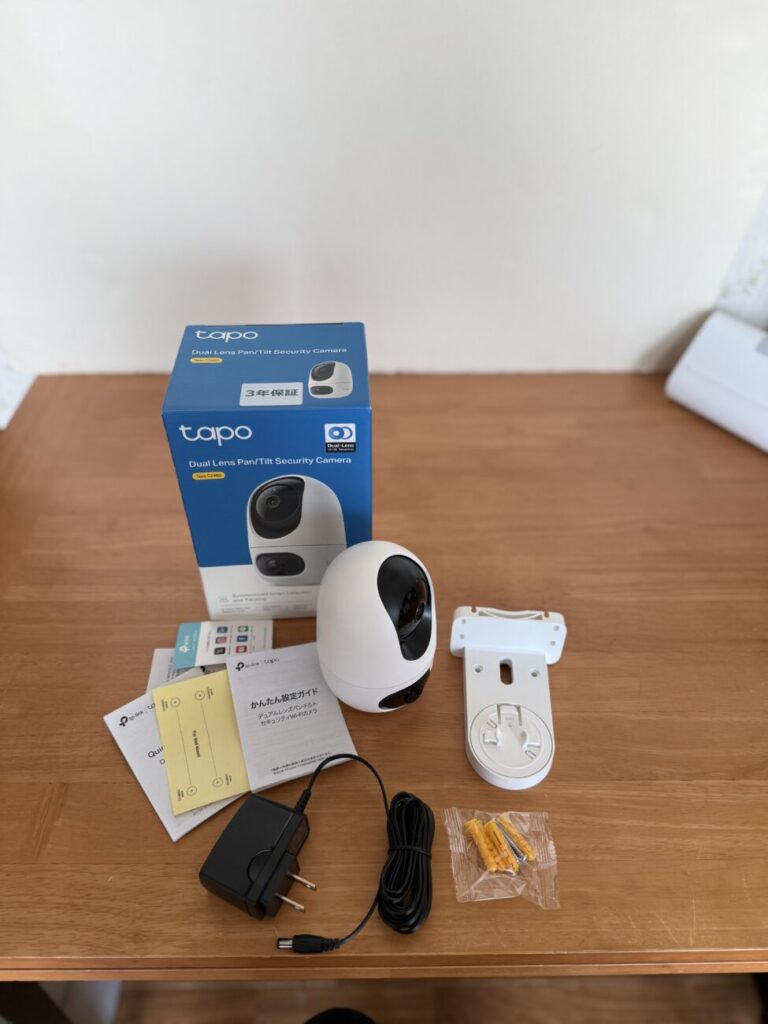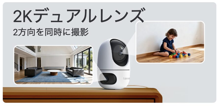| 製品構成 | Tapo C245D本体×1 DC電源アダプター×1 位置決めシール×1 取り付け用台座×1 取り付け用ネジ×4 取り付け用アンカー×4 かんたん設定ガイド |