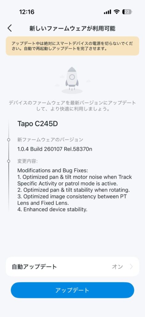 私の初回起動時もこんな感じでファームウェア更新がありました。