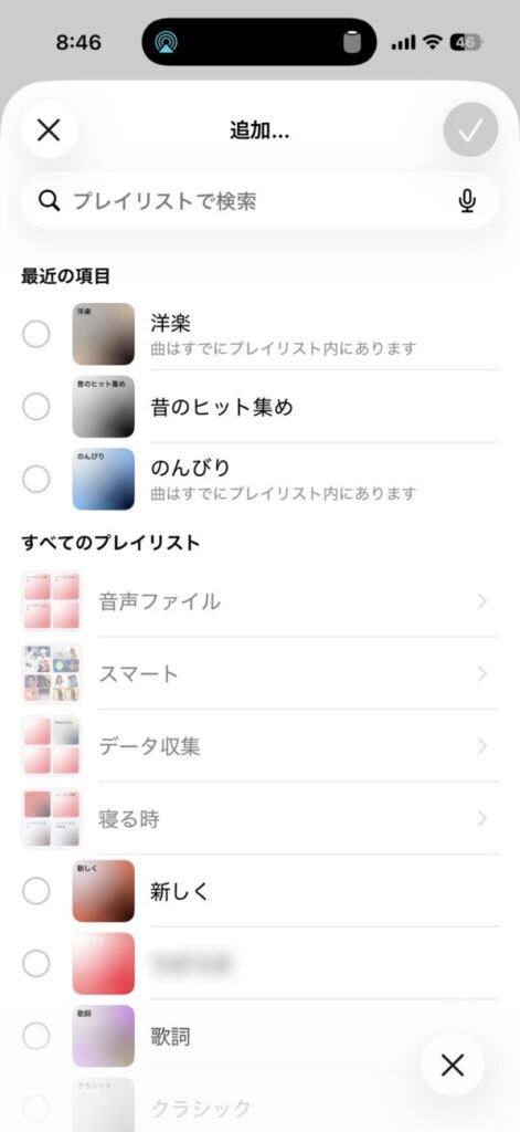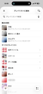 - 次に右下のリマインダーのアイコンみたいなものを押すと複数のプレイリストに追加するモードに切り替わります。