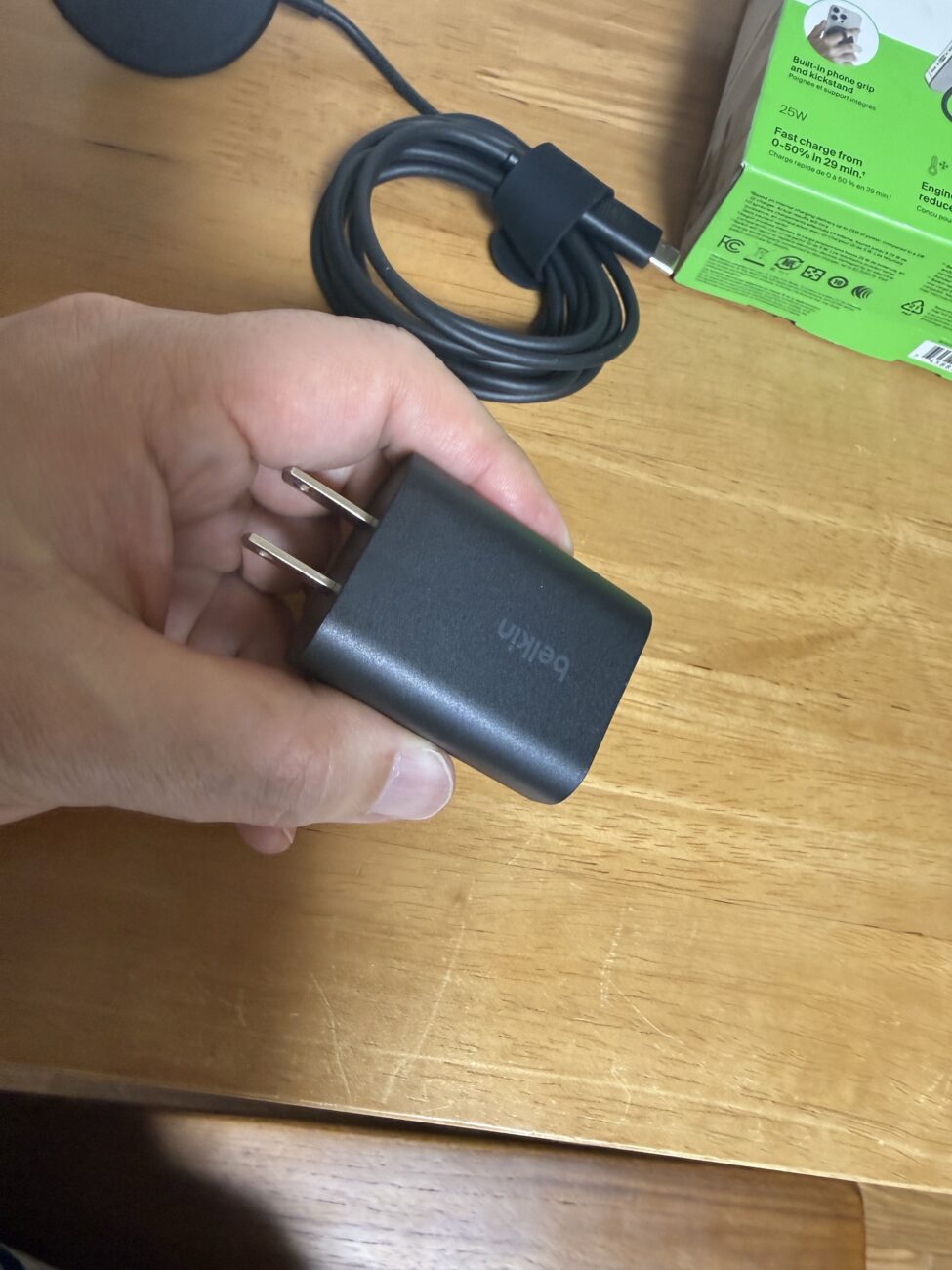 この手の商品付属の電源アダプタは見た目がチープなものも多いですが、さすがベルキンさんは高級感がありました。