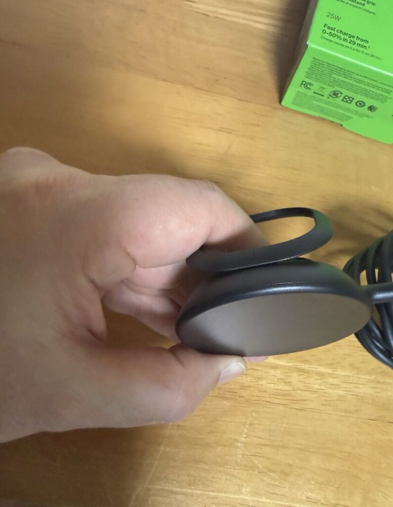 指を入れるリングがエッジが多少鋭いのか、iPhone16Proの重さだと指が少し痛い角度もあるので、持ち方を工夫して指の肉にエッジが食い込まないようにしてます。