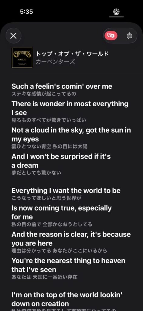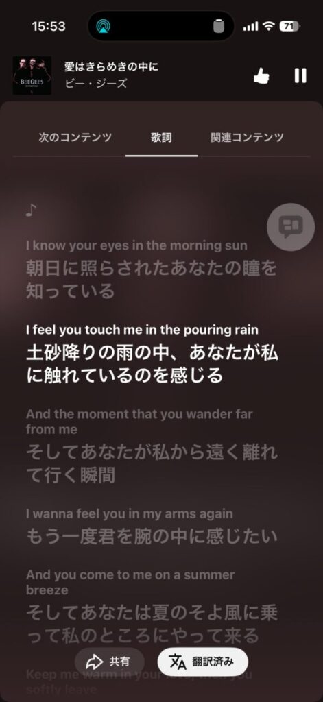 YouTubeミュージック翻訳機能よりApple Music翻訳機能が好みだった